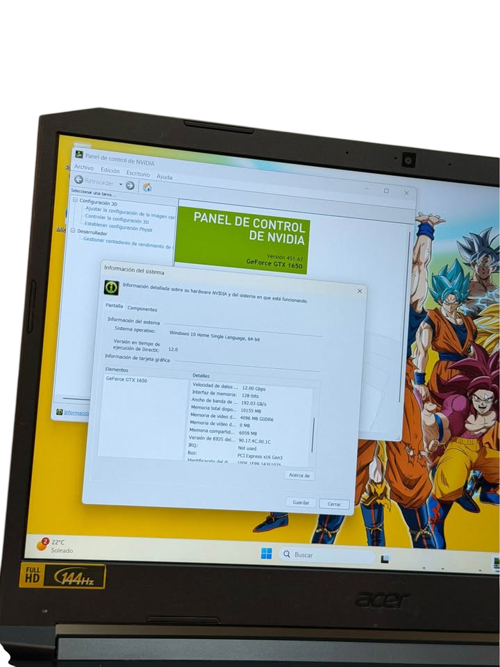 Tarjeta de Video: NVIDIA® GeForce GTX™ 1650 (Potencia dedicada para gráficos y renderizado).