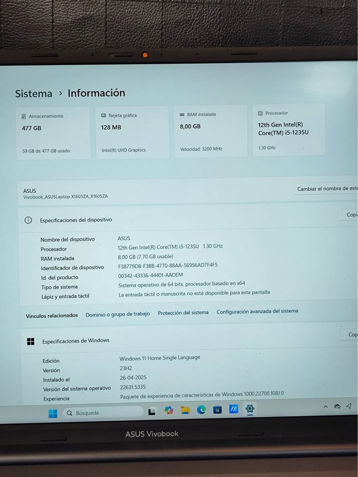 ASUS VIVOBOOK 16" PULGADAS / INTEL i5-12VA GEN - 8GB RAM - 512 GB SSD